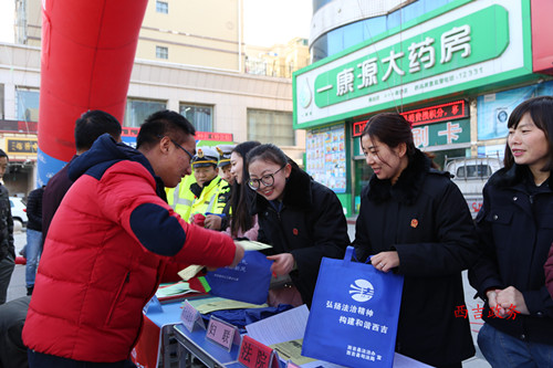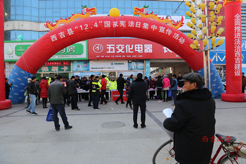 为深入贯彻党的十九大精神,大力学习宣传宪法,弘扬宪法精神,增强全民法治观念, 12月4日,西吉县人民法院与县直各相关单位共同在县商城门口,积极参加由西吉县依法治县普法办公室组织的“学习贯彻党的十九大精神,全面推进法治西吉建设”为主题的国家宪法日暨“12•4”全国法制宣传日大型集中宣传活动,为过往群众提供法律咨询,答疑解惑,普及法律知识、进行司法宣传。