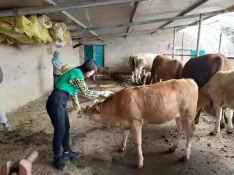 学员在牛圈喂牲口。