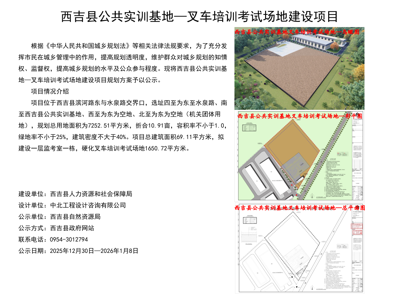 西吉县2025年公共实训基地-叉车培训考试场地建设项目公示