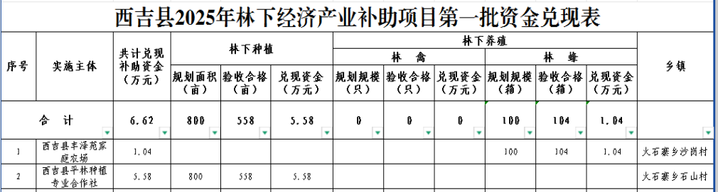 现将验收结果及补助资金兑现花名册进行公示,公示期间若有异议请向县林业和草原局或火石寨乡人民政府提出。