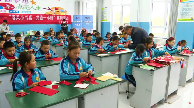 近日,宁夏图书馆在我县将台堡镇中心小学开展“阅游宁夏”全民阅读文旅融合服务推广活动。