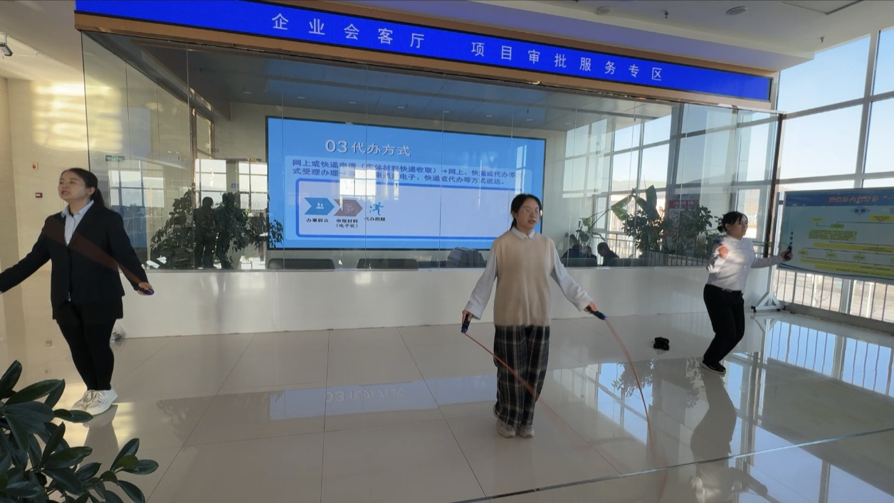 文艺展演环节星光闪耀、温情满怀,8个特色节目全部由干部职工自编自导自演。《马年style》《大花轿》《上春山》舞蹈节目舞步轻快,踏出新年的喜庆节拍;独唱《顾里木图路上的小酒馆》《想自由》婉转悠扬,唱出对生活的热爱与期许;哑剧小品《你有我也有》以夸张诙谐的肢体动作演绎日常生活里的欢乐互动,无声的默契逗得台下笑声连连。尤为亮眼的是,三句半《政务服务记心间》用诙谐直白的语言诠释为民初心,情景剧《政务重生:从被投诉到被赞扬》再现政务服务改革中的真实场景,将政务服务特色与文艺表达深度融合,让观众在欣赏节目之余,更坚定了“优化服务无止境”的信念。《你比我猜》《原地踏步》《搭纸杯金字塔》等趣味游戏穿插其间,为活动注入满满活力。