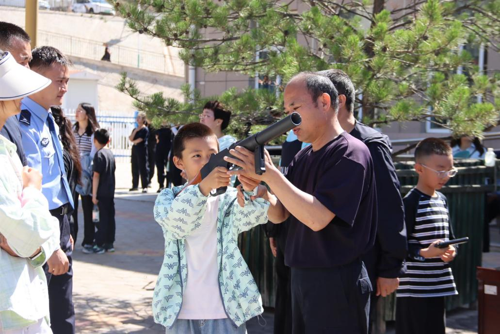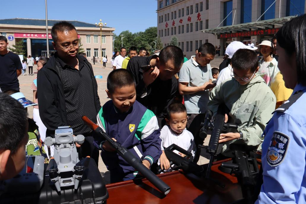 在民警热情引导下大家开启了警营探秘之旅。首先映入眼帘的是警用装备展示区,琳琅满目的先进装备整齐排列,样式丰富的警用无人机、防爆盾牌、防暴枪、防弹衣、催泪喷雾剂、手铐等各类警用装备一一亮相。民警详细讲解装备功能及使用场景,大家兴致勃勃,不时提出疑问,还亲身体验穿戴警用装备,感受其重量与使命感,对公安工作的专业性和危险性有了更直观认识。