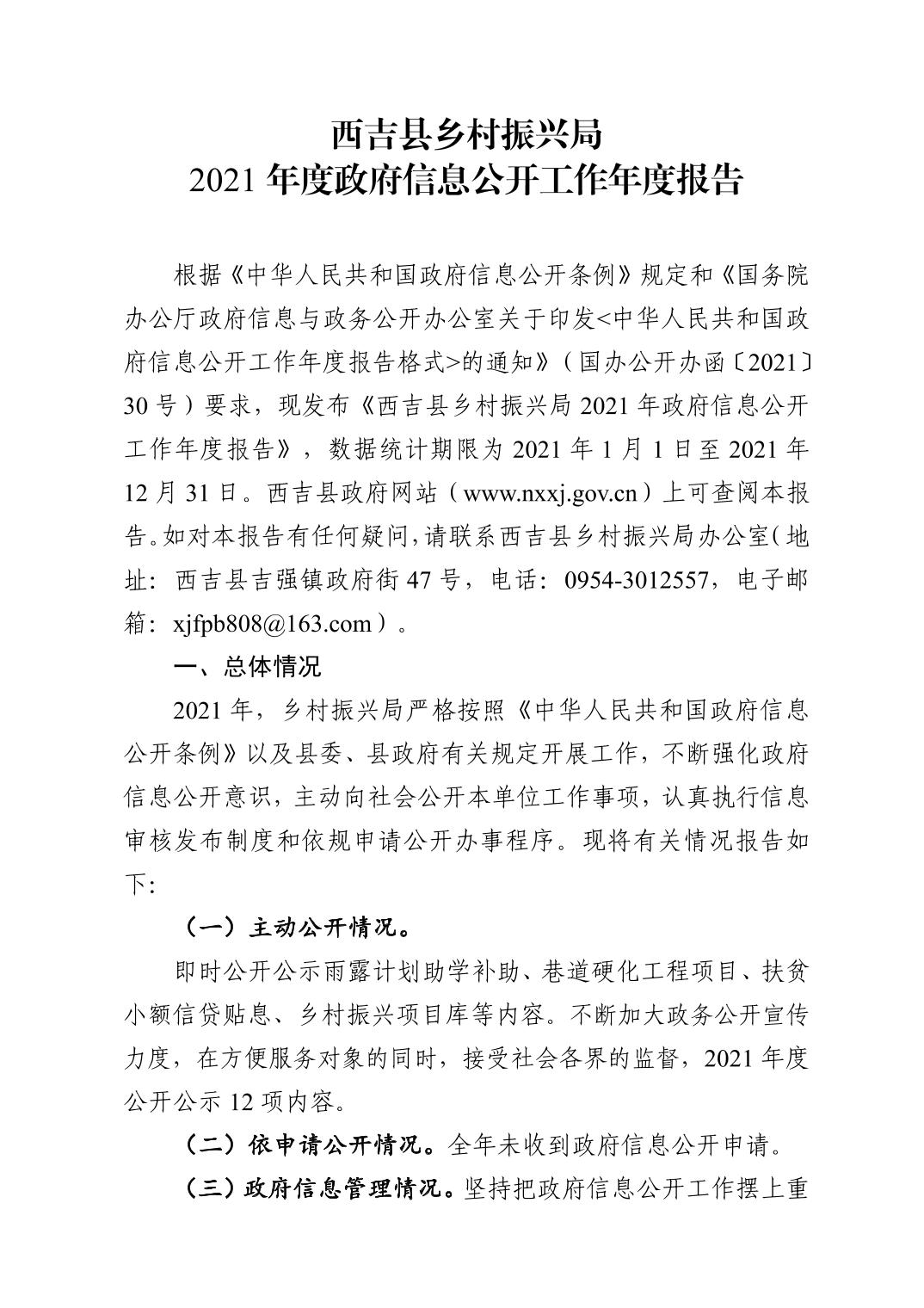 西吉县乡村振兴局2021年度政府信息公开工作年度报告